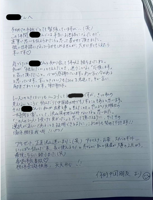 書道家の生徒さんから全中国語の手紙…美しい字❤